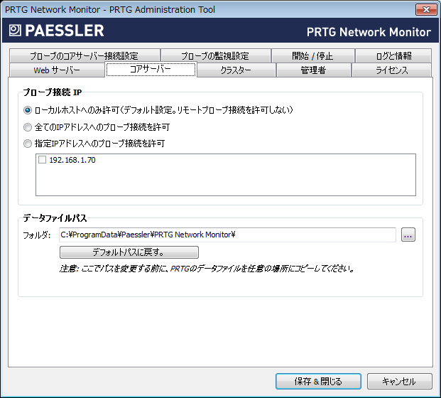 「プローブのコアサーバー接続設定」の中のパスも変更される。